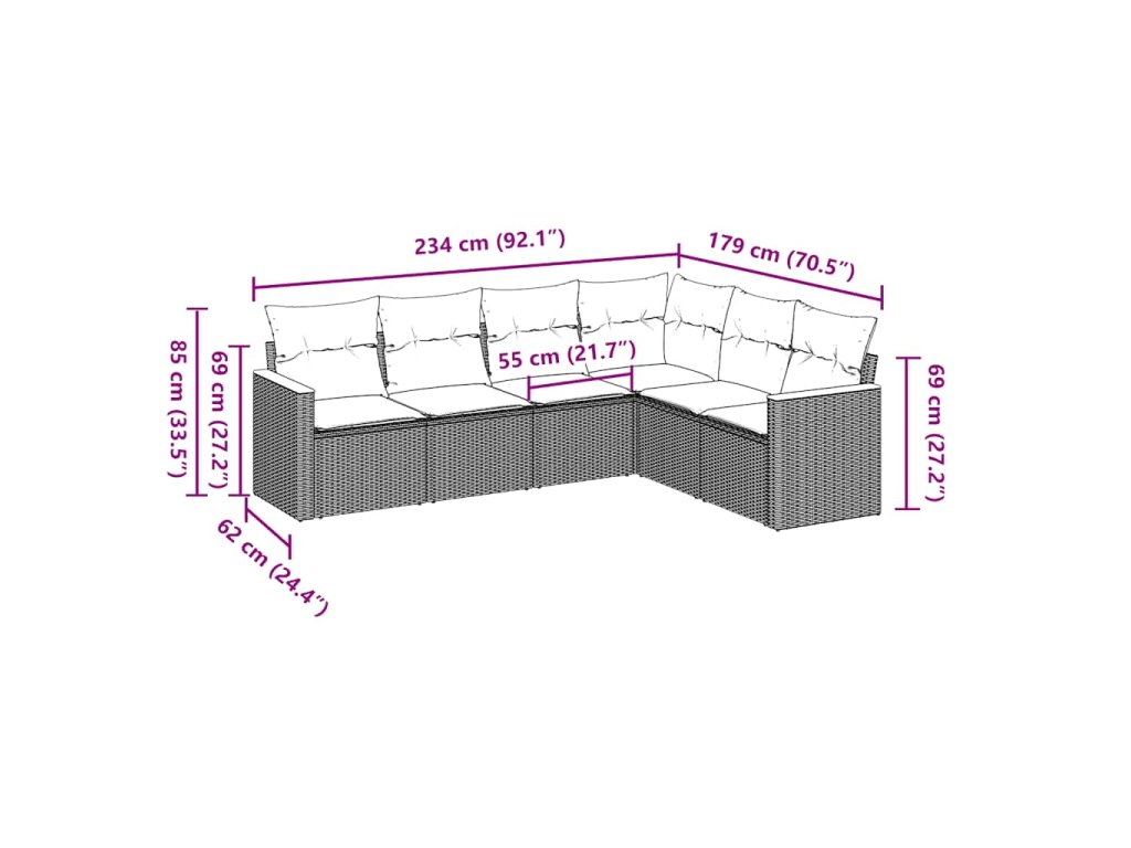 Tato zahradní sedací souprava je dokonalým doplňkem vaší zahrady, terasy nebo dvorku a poskytne vám pohodlné a příjemné místo, kde si můžete povídat s rodinou a přáteli nebo jen tak odpočívat a užívat si pobyt venku.