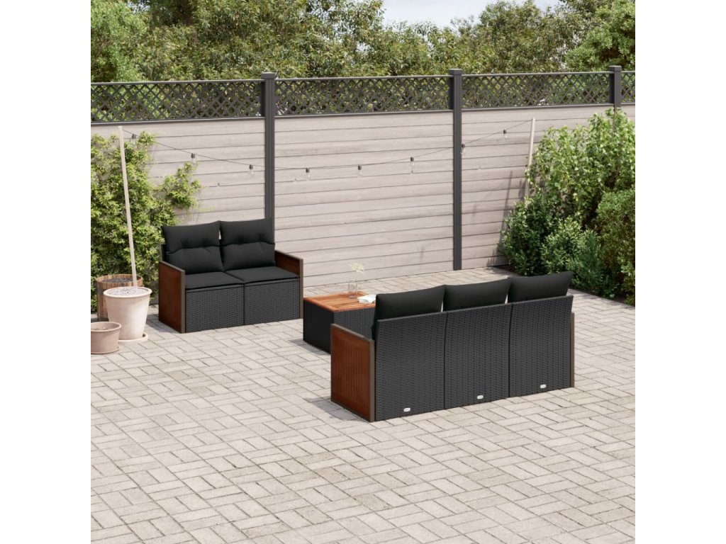 6dílná zahradní sedací souprava s poduškami černá polyratan 3259864