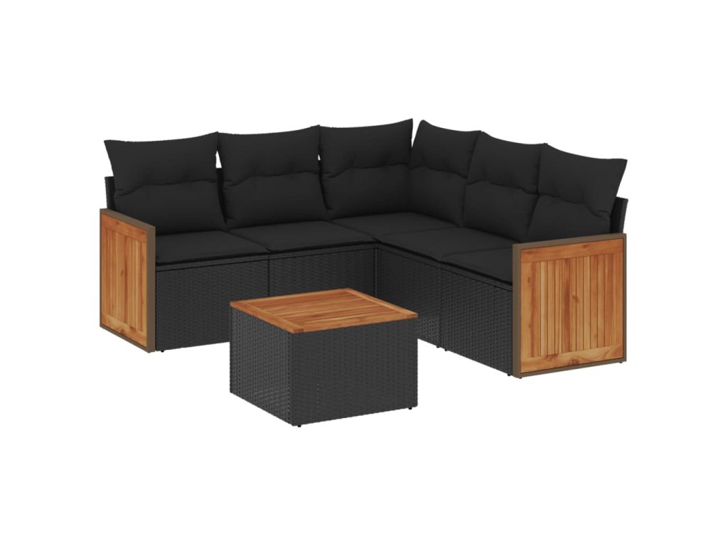 6dílná zahradní sedací souprava s poduškami černá polyratan 3260046