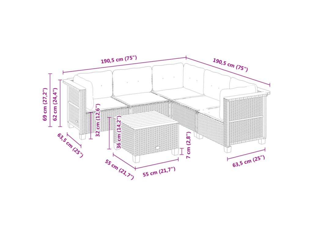 Tato zahradní sedací souprava je dokonalým doplňkem vaší zahrady, terasy nebo dvorku a poskytne vám pohodlné a příjemné místo, kde si můžete povídat s rodinou a přáteli nebo jen tak odpočívat a užívat si pobyt venku.