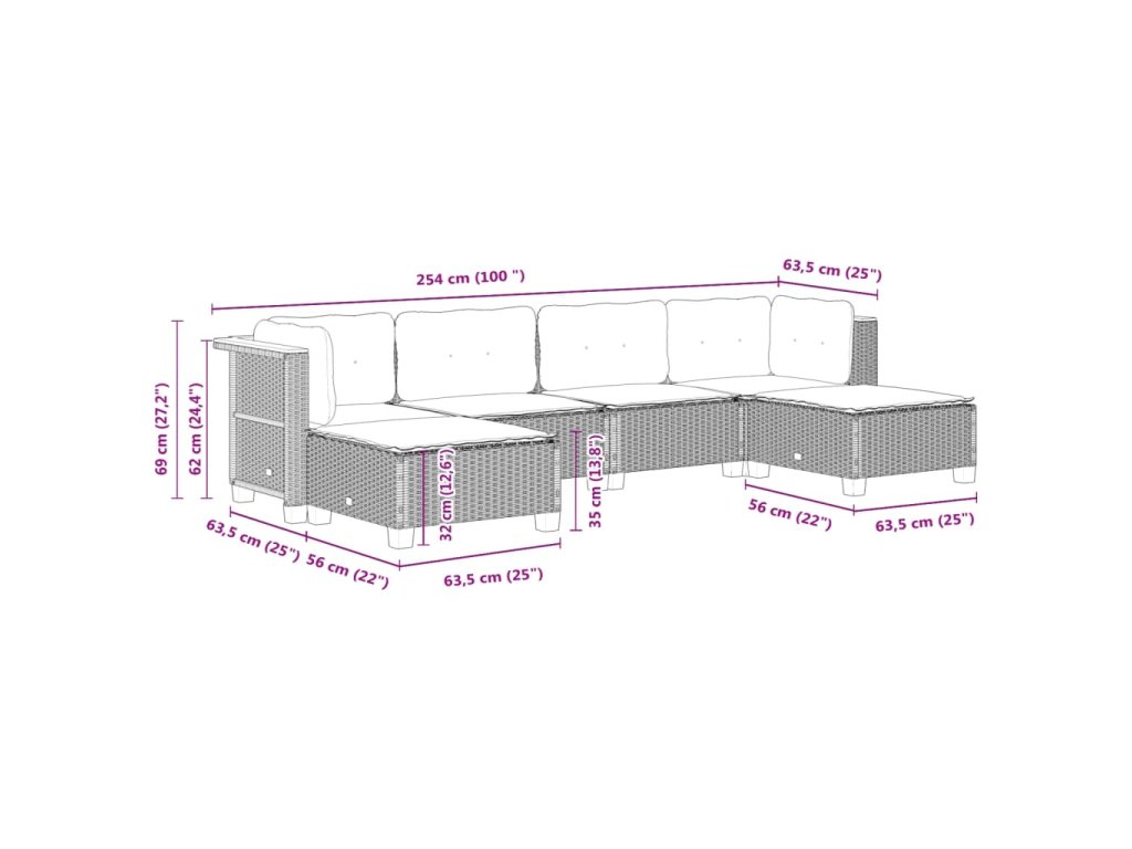 6dílná zahradní sedací souprava s poduškami černá polyratan 3261947