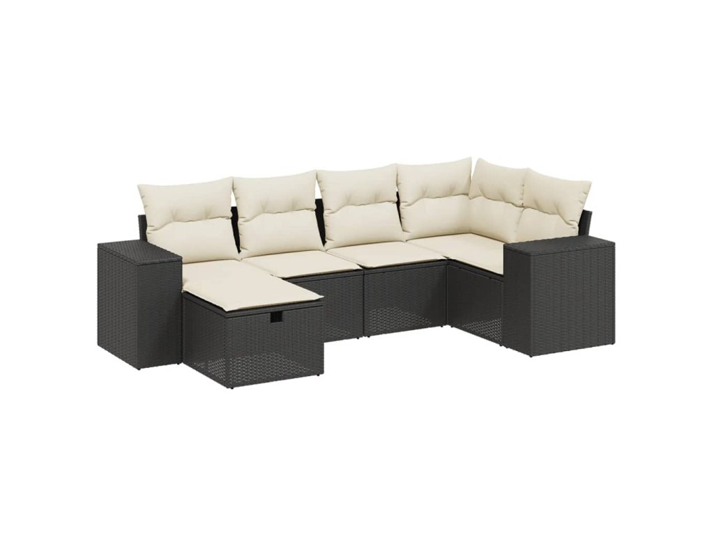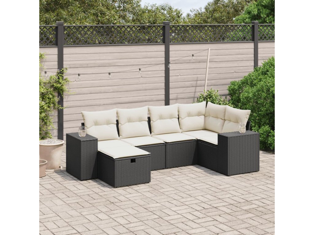 6dílná zahradní sedací souprava s poduškami černá polyratan 3264412