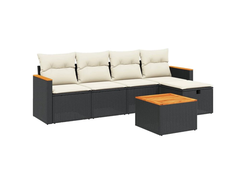 6dílná zahradní sedací souprava s poduškami černá polyratan 3265291