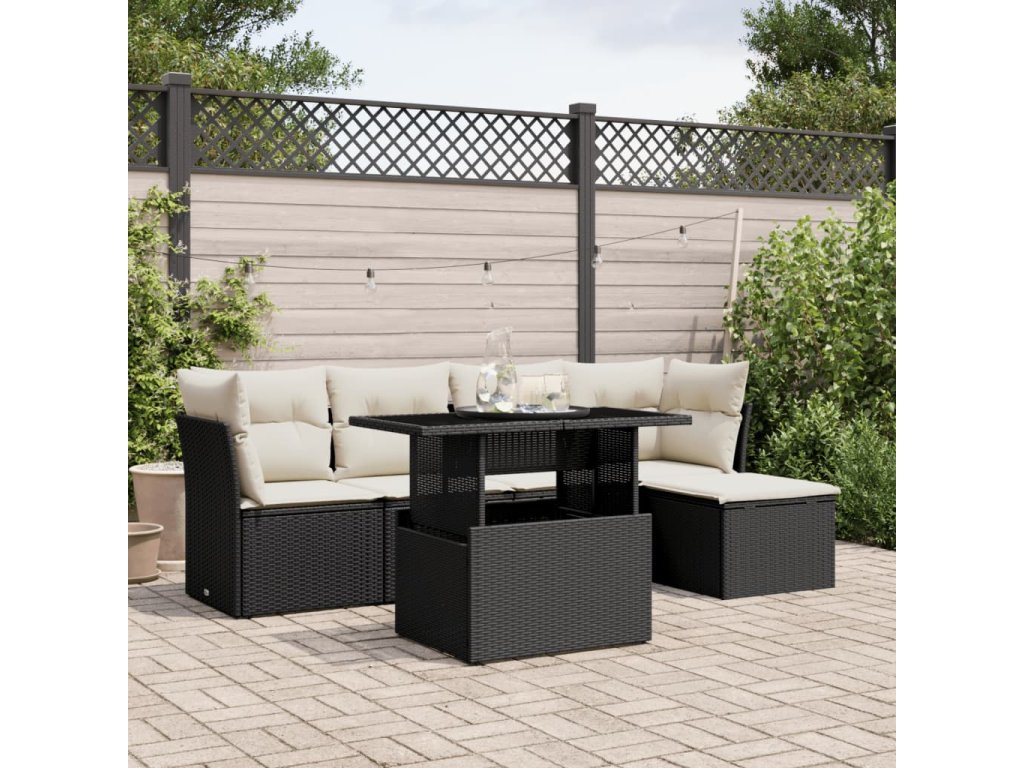 6dílná zahradní sedací souprava s poduškami černá polyratan 3266546