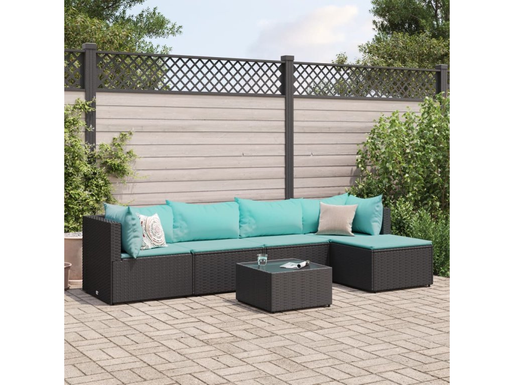 6dílná zahradní sedací souprava s poduškami černá polyratan 3308068