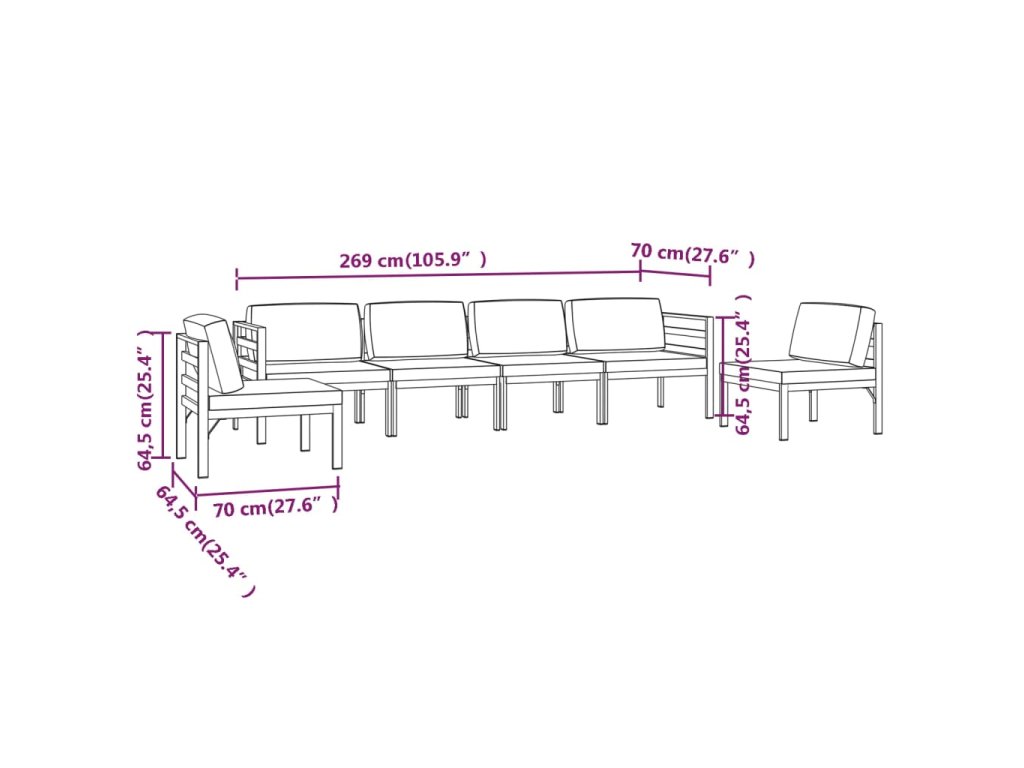 - Rozměry středové pohovky: 64,5 x 70 x 64,5 cm (Š x H x V)