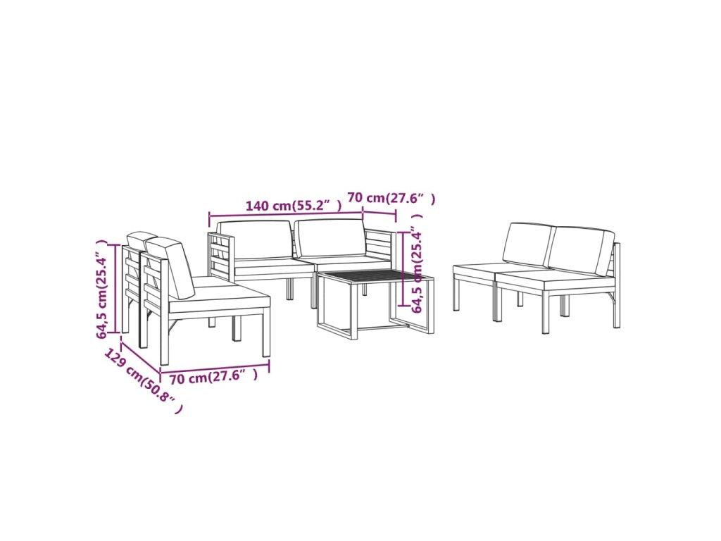 - Rozměry středové pohovky: 64,5 x 70 x 64,5 cm (Š x H x V)