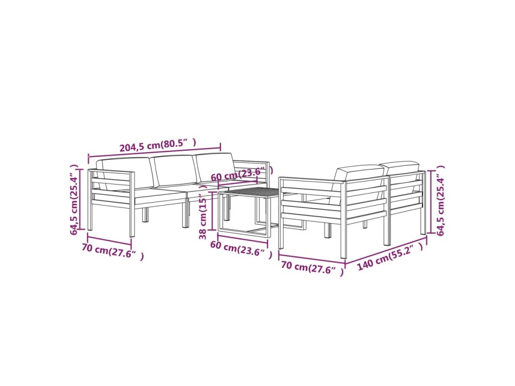 6dílná zahradní sedací souprava s poduškami hliník antracitová 3107804