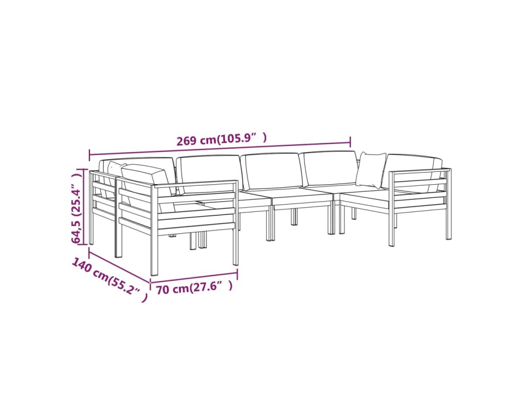 6dílná zahradní sedací souprava s poduškami hliník antracitová 3107811