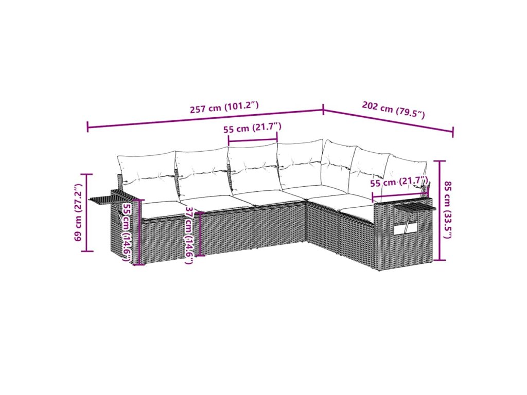 Tato zahradní sedací souprava je dokonalým doplňkem vaší zahrady, terasy nebo dvorku a poskytne vám pohodlné a příjemné místo, kde si můžete povídat s rodinou a přáteli nebo jen tak odpočívat a užívat si pobyt venku.