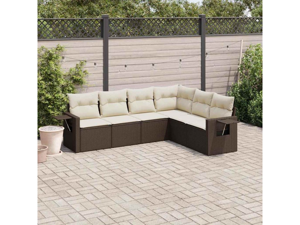 6dílná zahradní sedací souprava s poduškami hnědá polyratan 3220212