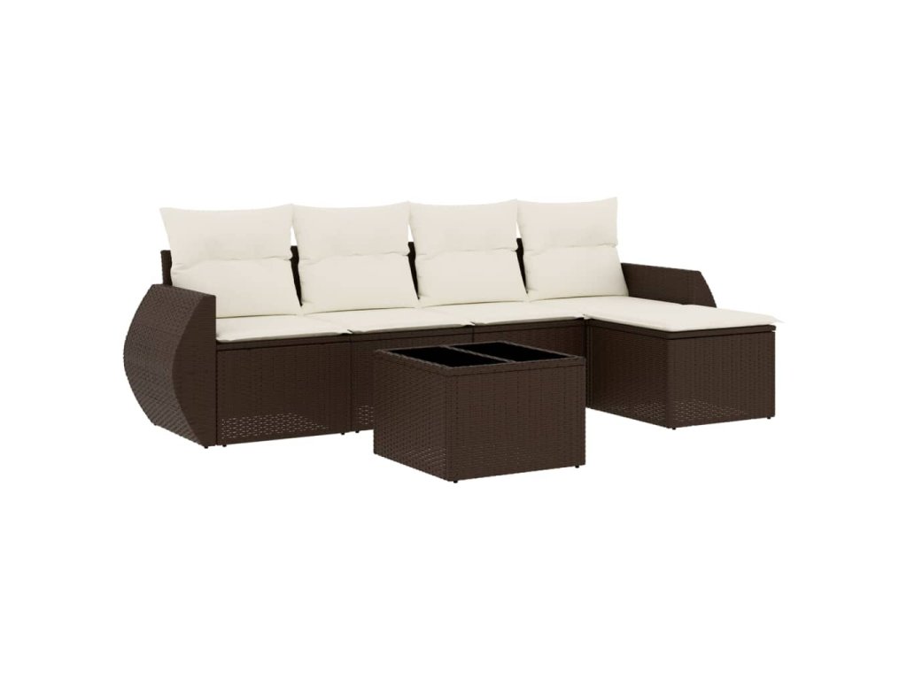 6dílná zahradní sedací souprava s poduškami hnědá polyratan 3221302