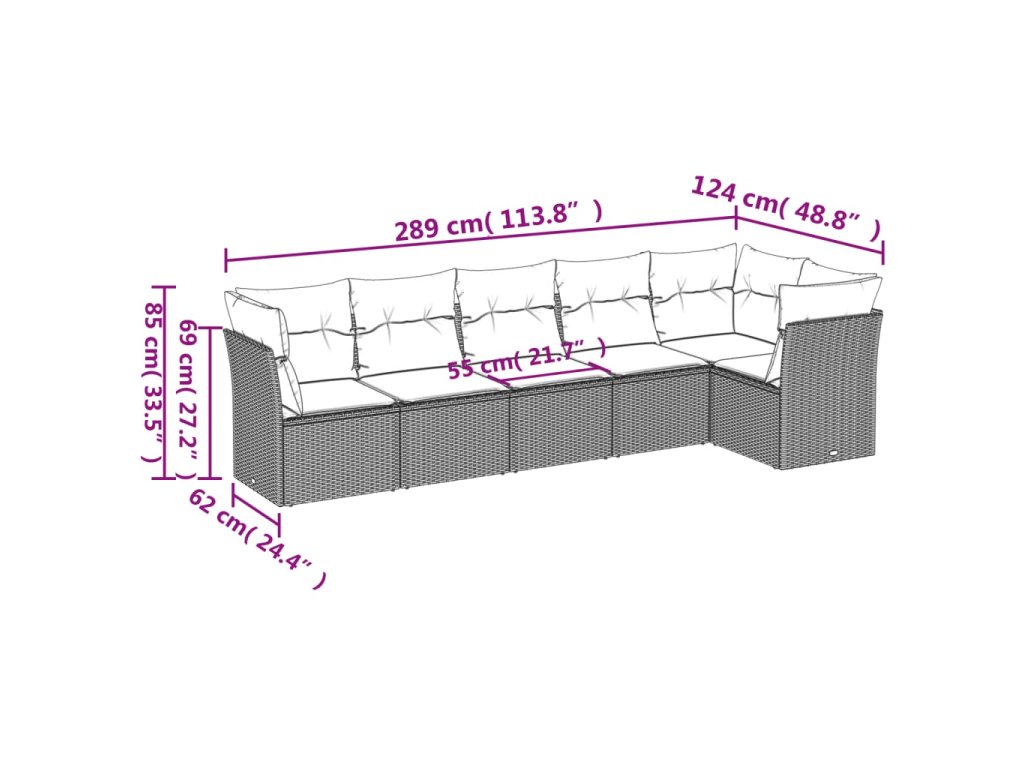 6dílná zahradní sedací souprava s poduškami hnědá polyratan 3249502
