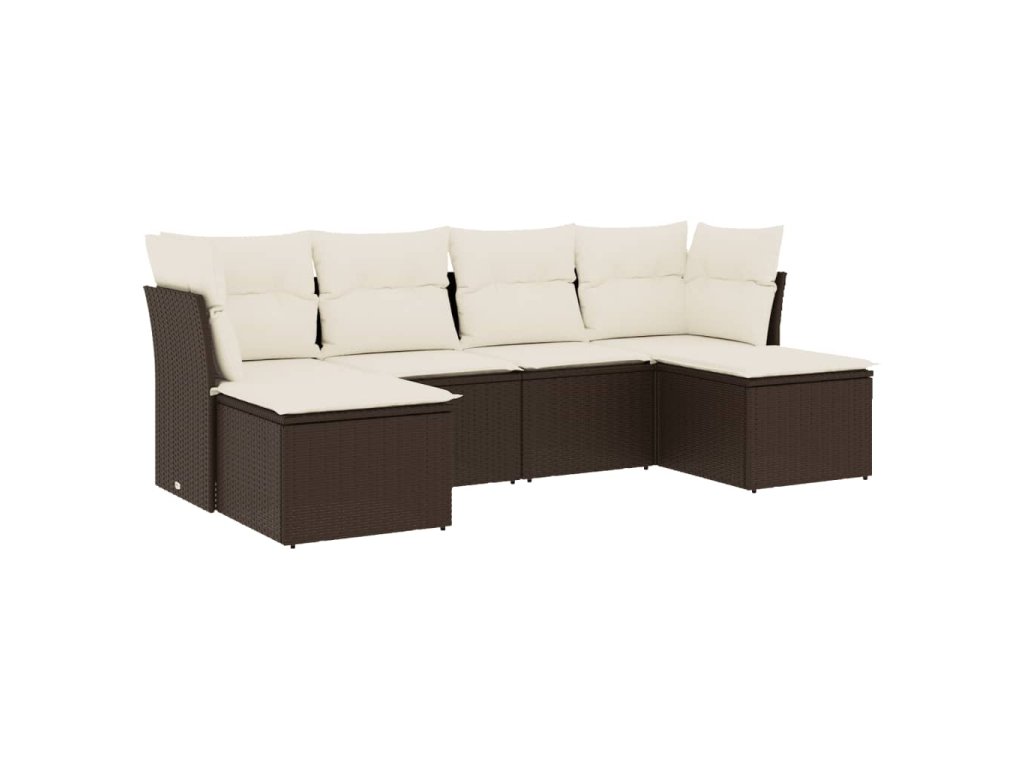 6dílná zahradní sedací souprava s poduškami hnědá polyratan 3249852