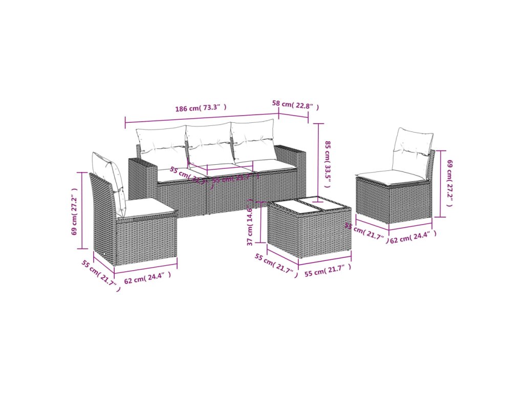 6dílná zahradní sedací souprava s poduškami hnědá polyratan 3251140