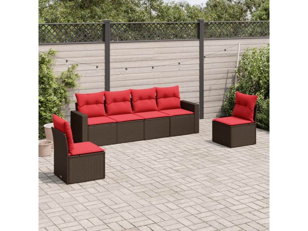 6dílná zahradní sedací souprava s poduškami hnědá polyratan 3251151