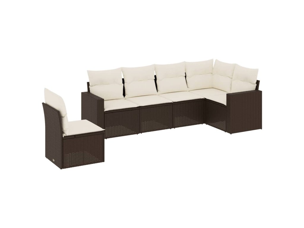 6dílná zahradní sedací souprava s poduškami hnědá polyratan 3251370