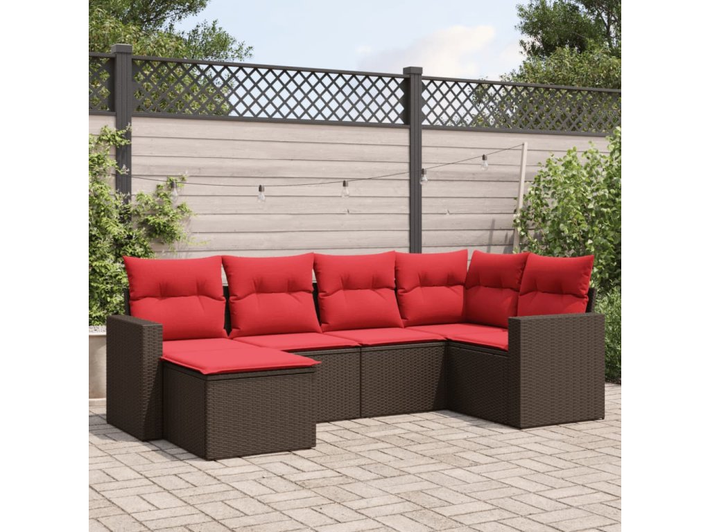 6dílná zahradní sedací souprava s poduškami hnědá polyratan 3251601