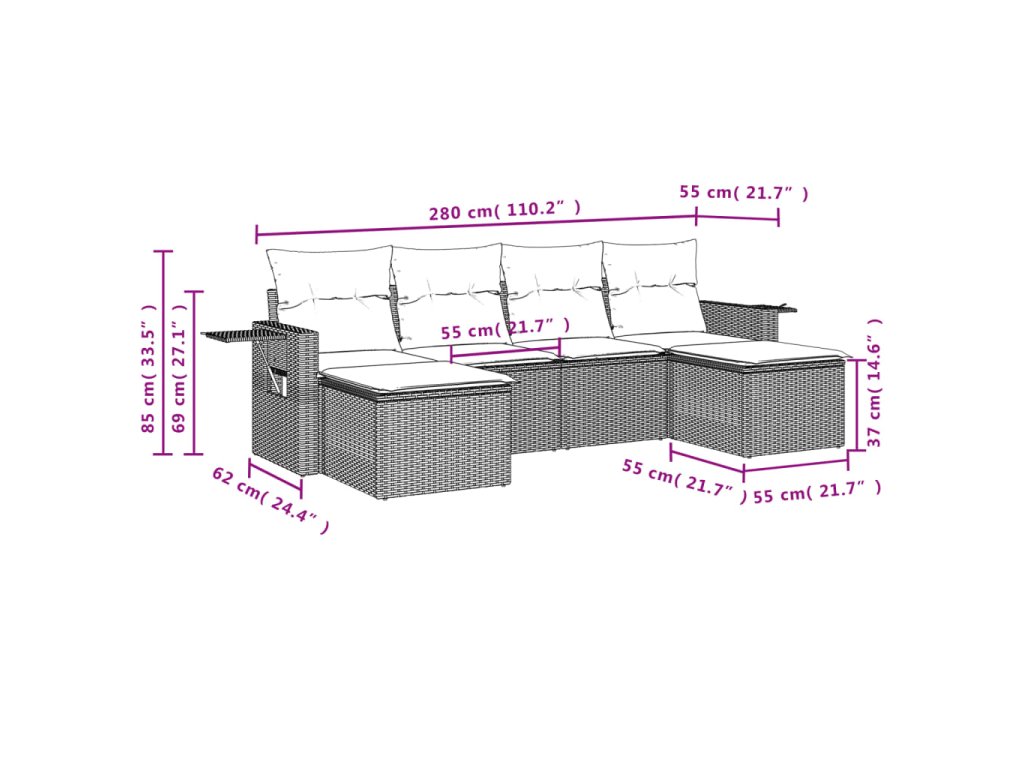 Tato zahradní sedací souprava je dokonalým doplňkem vaší zahrady, terasy nebo dvorku a poskytne vám pohodlné a příjemné místo, kde si můžete povídat s rodinou a přáteli nebo jen tak odpočívat a užívat si pobyt venku.