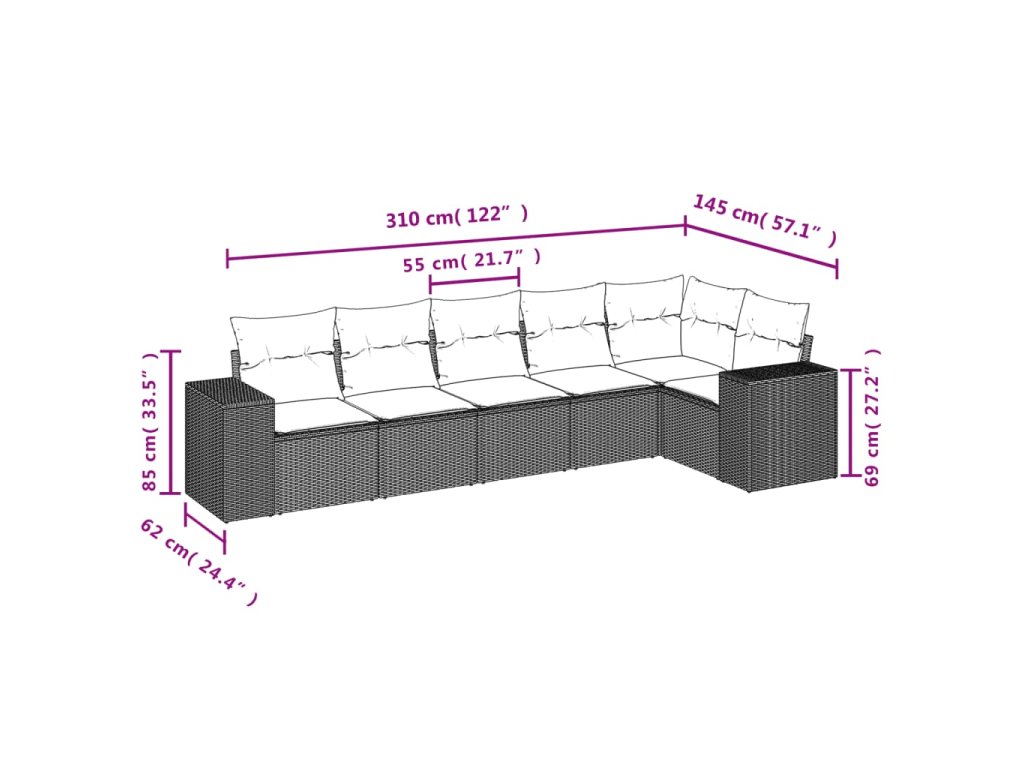 6dílná zahradní sedací souprava s poduškami hnědá polyratan 3254930