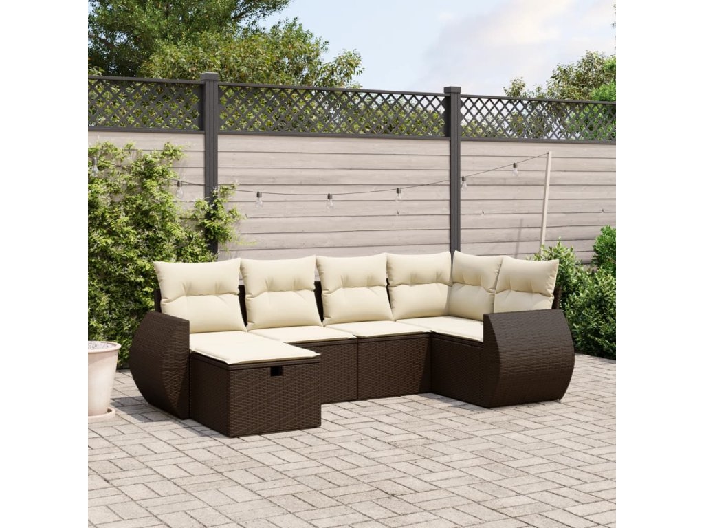 6dílná zahradní sedací souprava s poduškami hnědá polyratan 3264109