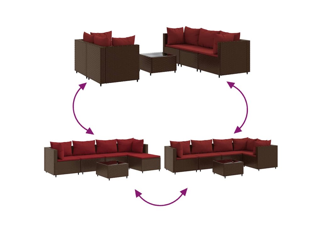 - Modulární design: Tato sada venkovního nábytku se vyznačuje modulární konstrukcí, je tedy zcela flexibilní a lze ji snadno přemisťovat, takže si můžete uspořádat venkovní nábytek dle vašich potřeb.