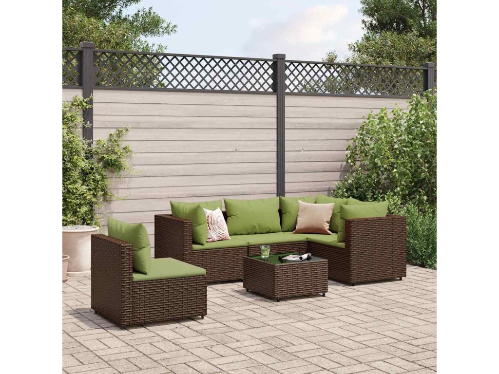 6dílná zahradní sedací souprava s poduškami hnědá polyratan 3308166