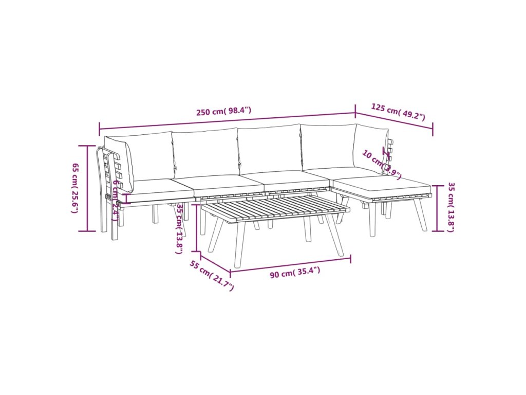 - Rozměry středové pohovky: 60 x 65 x 65 cm (Š x H x V)