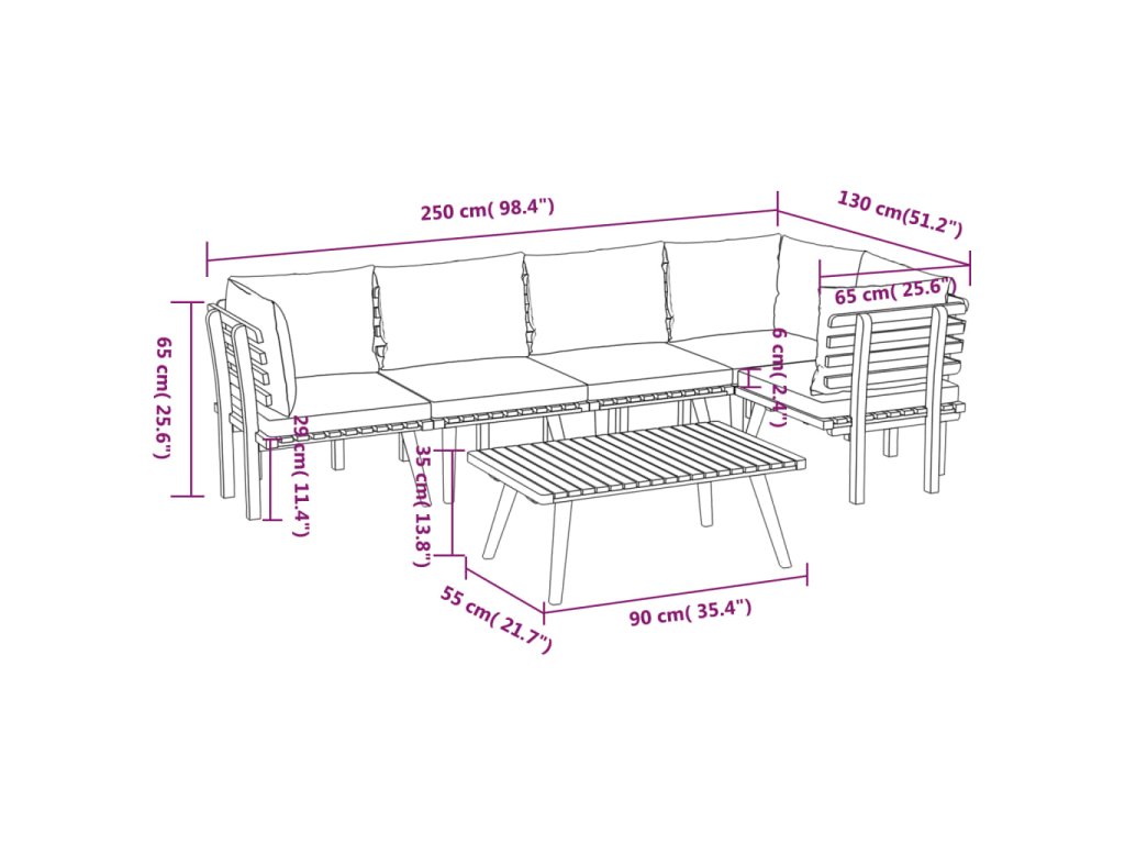 - Rozměry středové pohovky: 60 x 65 x 65 cm (Š x H x V)