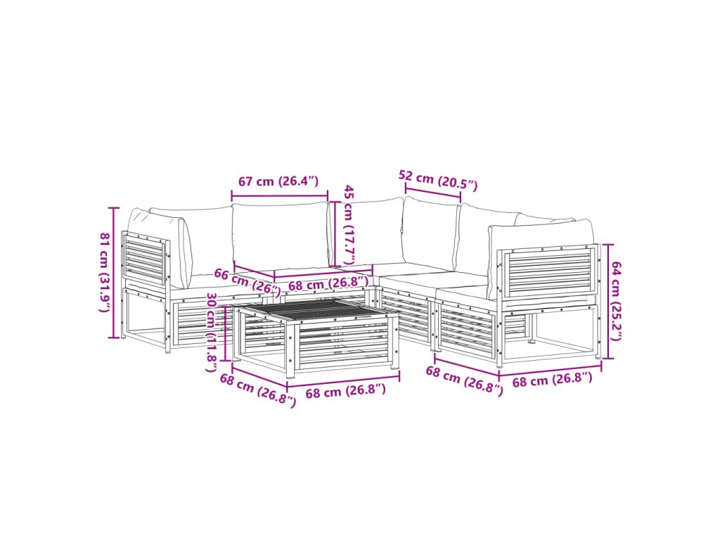- Celkové rozměry: 68 x 68 x 30 cm (D x Š x V)