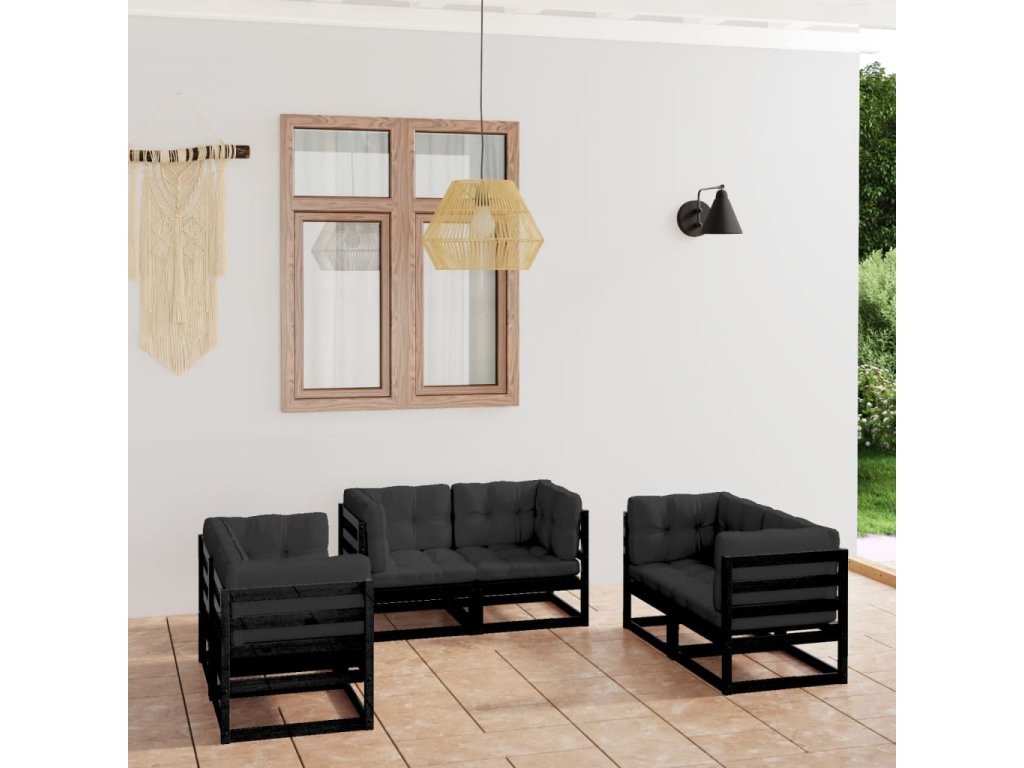 6dílná zahradní sedací souprava s poduškami masivní borovice 3076493