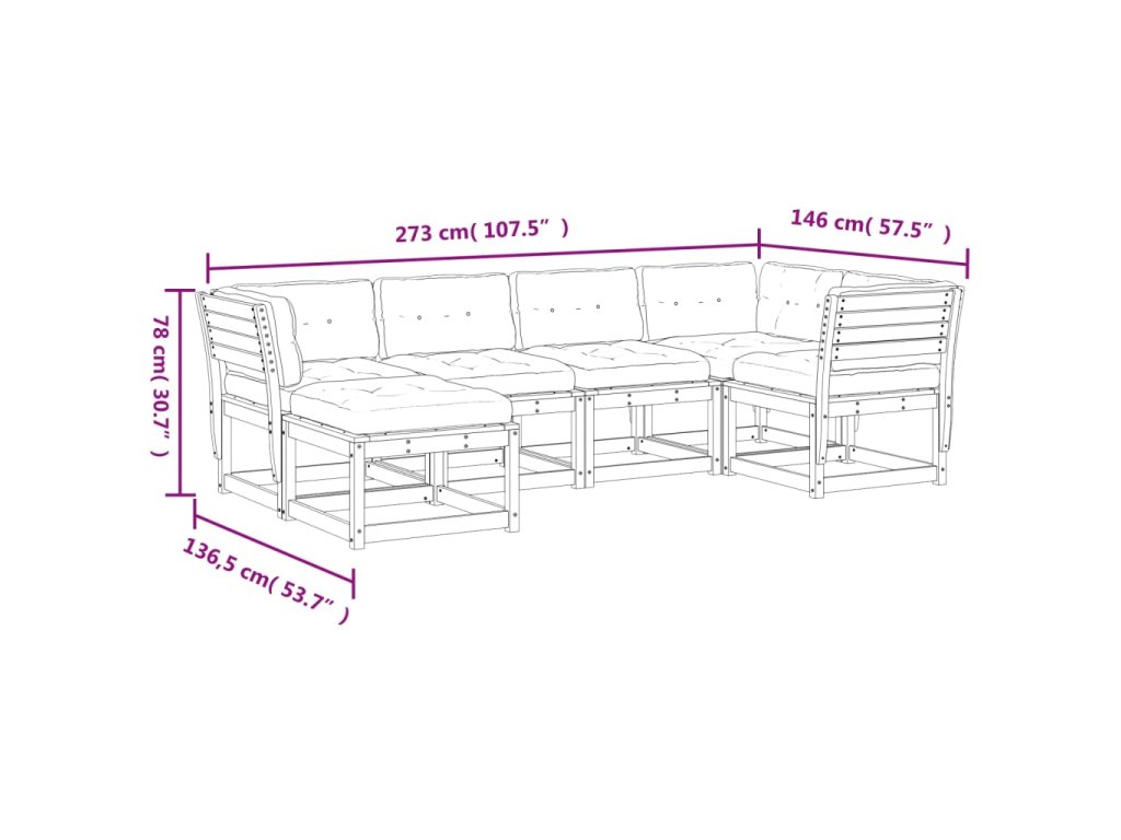 6dílná zahradní sedací souprava s poduškami masivní borovice 3217035