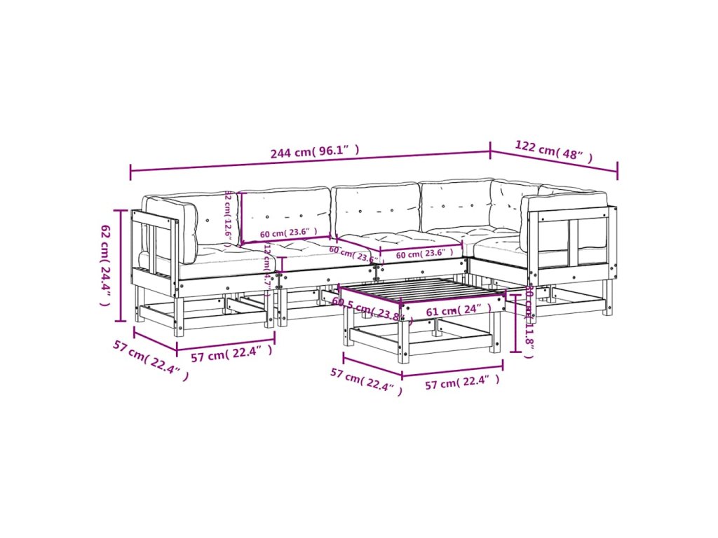 - Rozměry středové pohovky: 61 x 61 x 62 cm (D x Š x V)