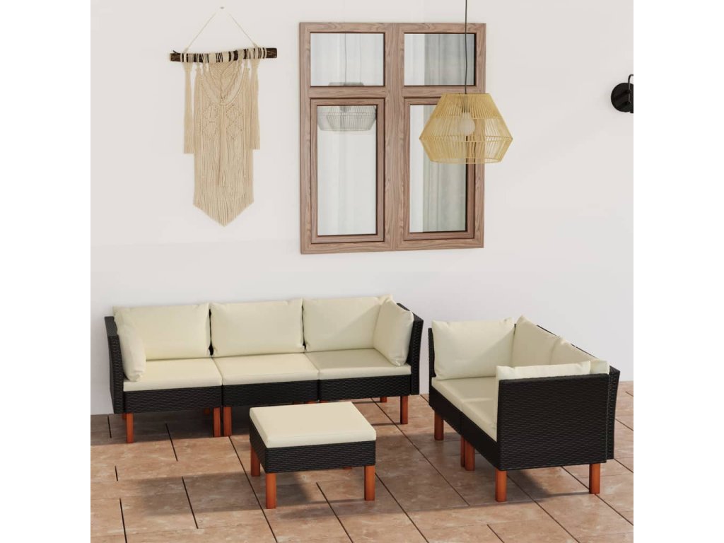6dílná zahradní sedací souprava s poduškami polyratan černá 3059738
