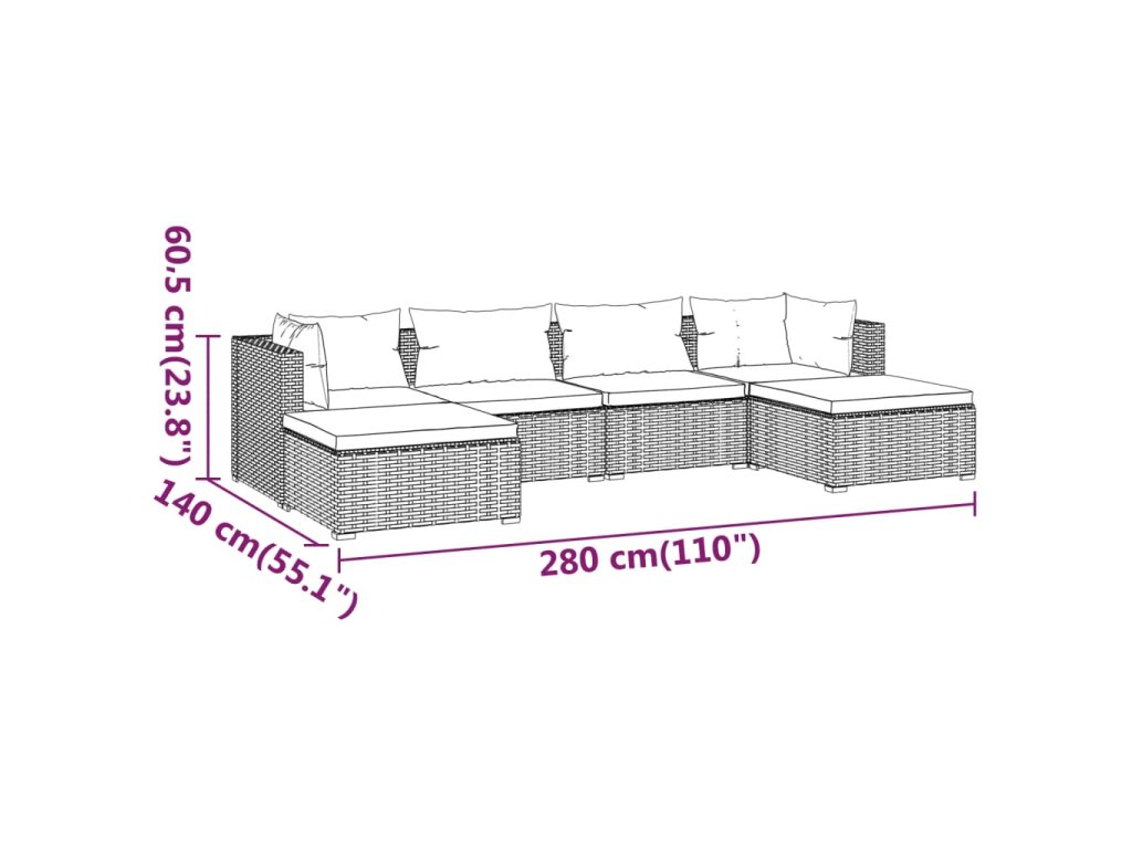 6dílná zahradní sedací souprava s poduškami polyratan hnědá 3101802