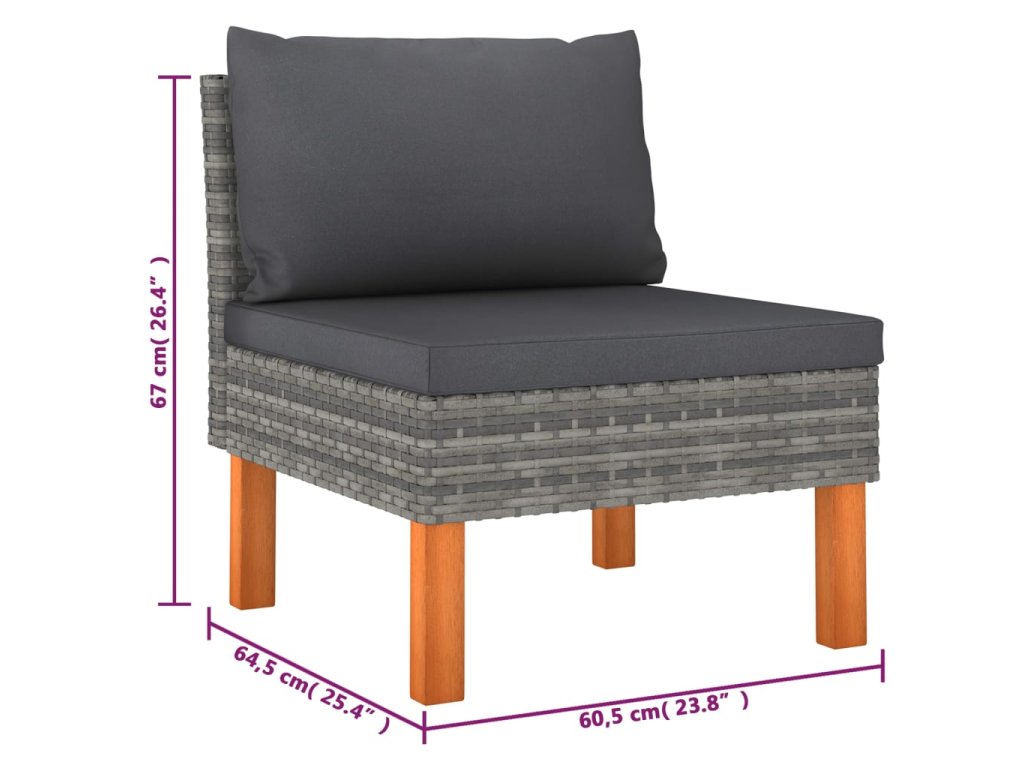 6dílná zahradní sedací souprava s poduškami polyratan šedá 3059713