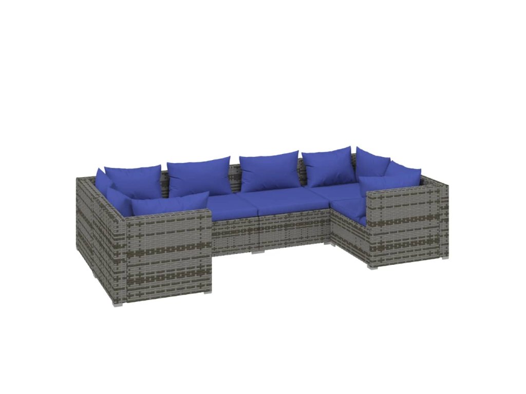 6dílná zahradní sedací souprava s poduškami polyratan šedá 3101942