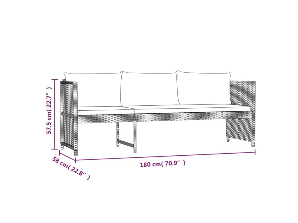 - Rozměry 3místné pohovky: 180 x 58 x 57,5 cm (Š x H x V)