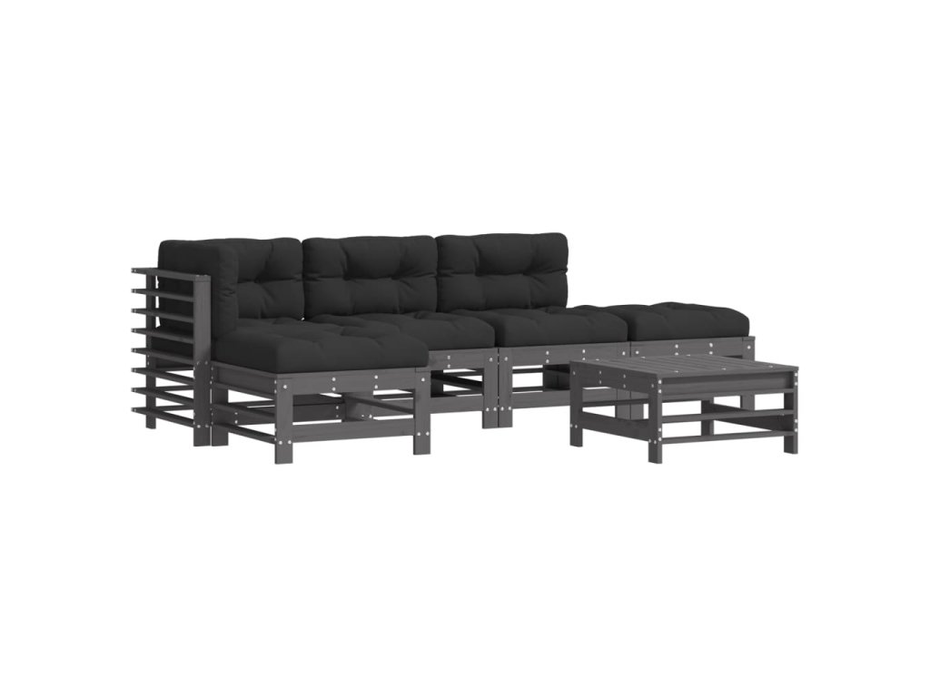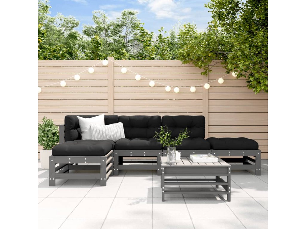 6dílná zahradní sedací souprava s poduškami šedá masivní dřevo 3185915