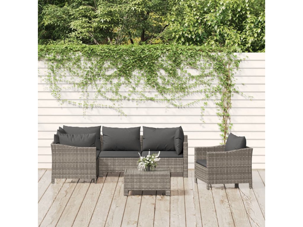 6dílná zahradní sedací souprava s poduškami šedá polyratan 3187281