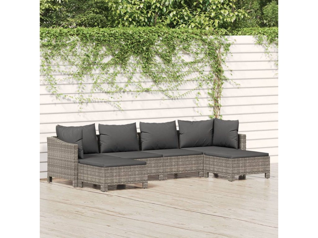 6dílná zahradní sedací souprava s poduškami šedá polyratan 3187295