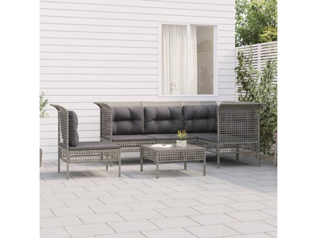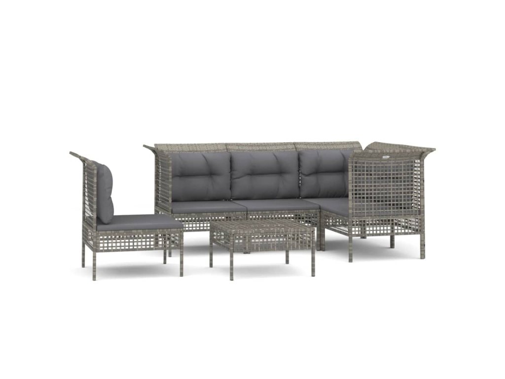 6dílná zahradní sedací souprava s poduškami šedá polyratan 3187523
