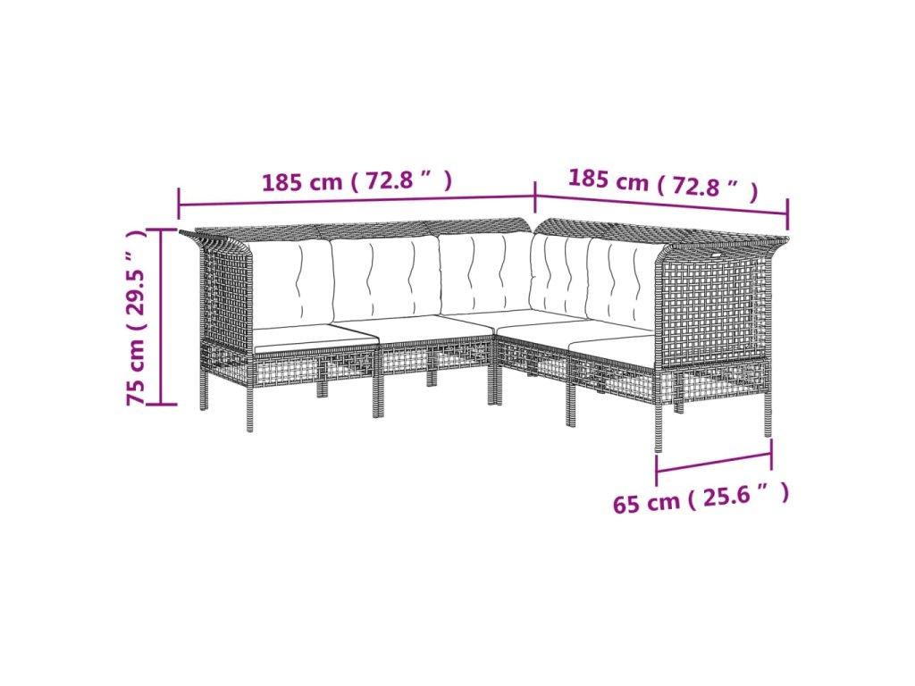 6dílná zahradní sedací souprava s poduškami šedá polyratan 3187548