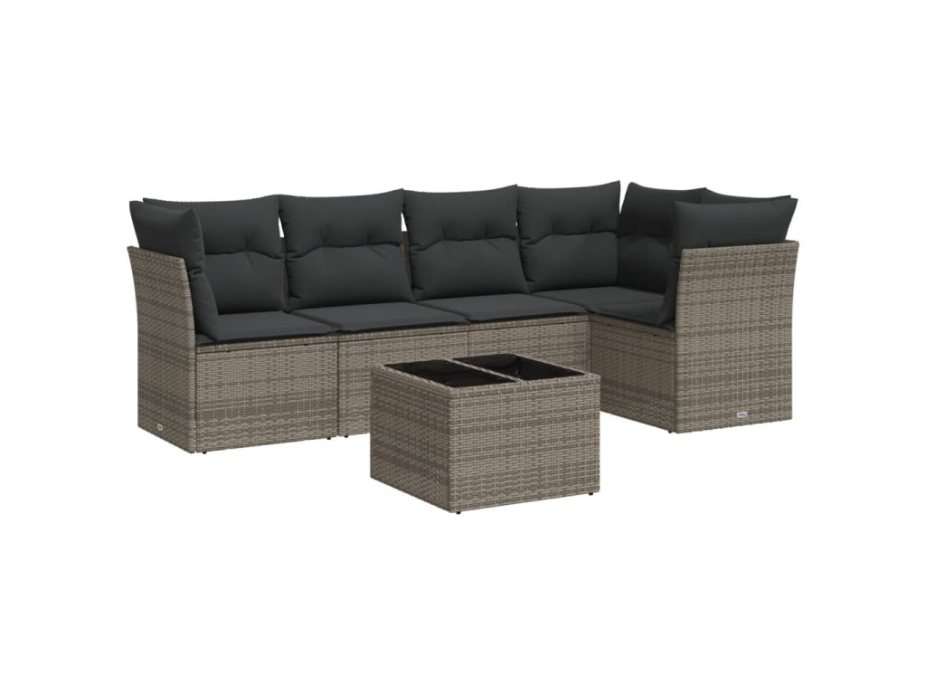 6dílná zahradní sedací souprava s poduškami šedá polyratan 3217610