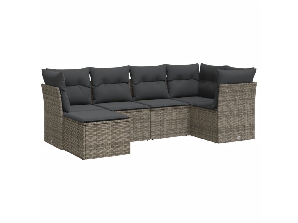 6dílná zahradní sedací souprava s poduškami šedá polyratan 3217950
