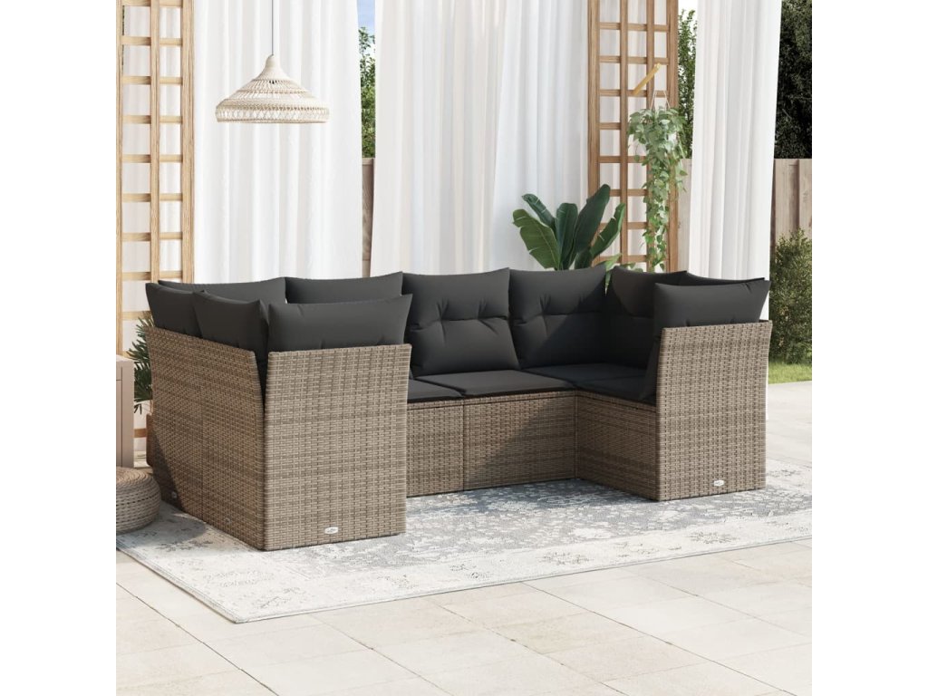 6dílná zahradní sedací souprava s poduškami šedá polyratan 3218110
