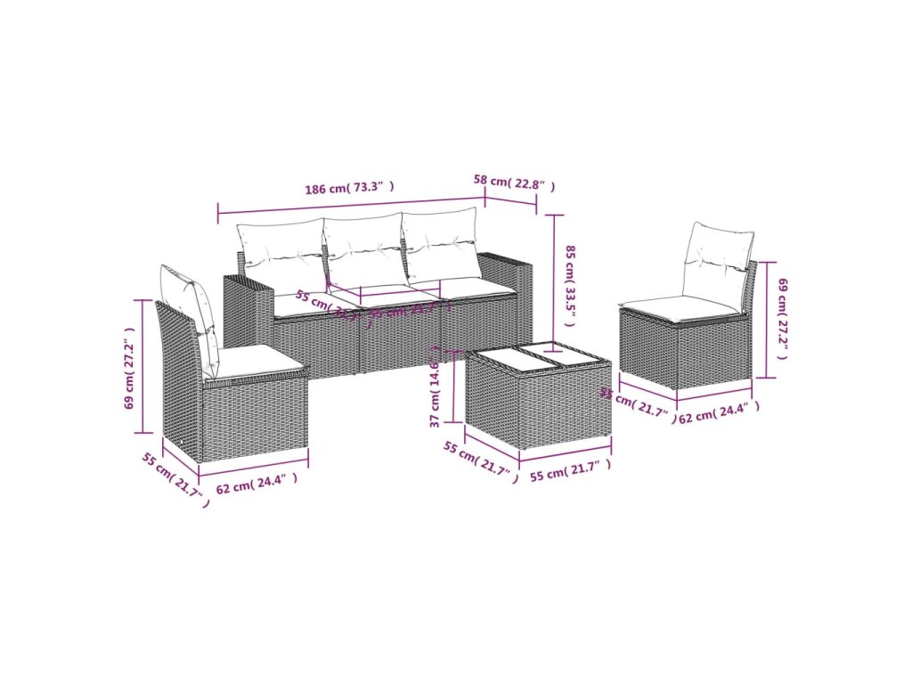 6dílná zahradní sedací souprava s poduškami šedá polyratan 3218790