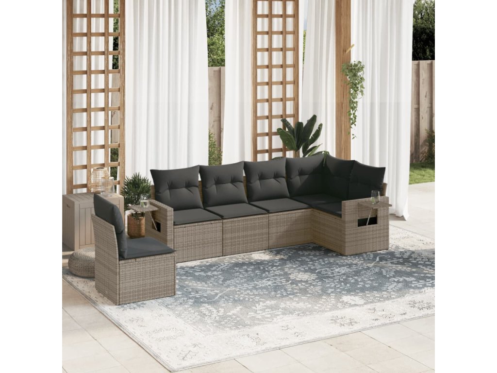 6dílná zahradní sedací souprava s poduškami šedá polyratan 3220229