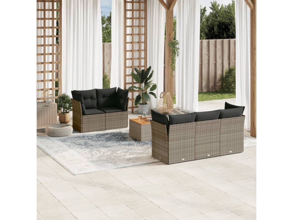 6dílná zahradní sedací souprava s poduškami šedá polyratan 3223484