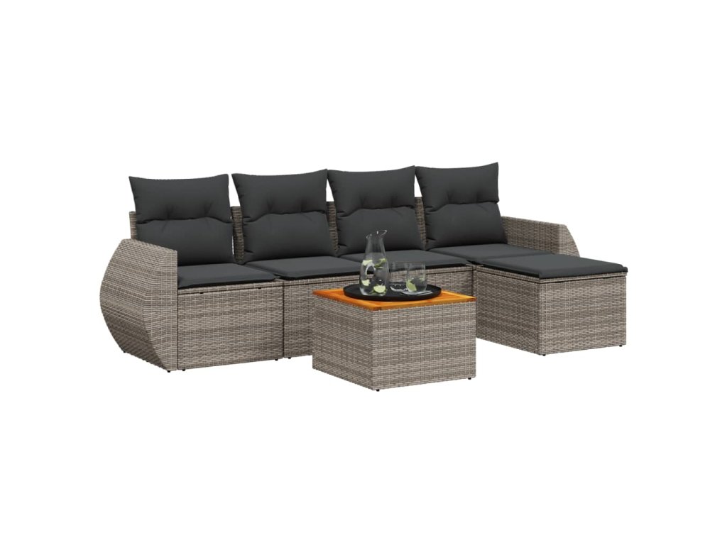 6dílná zahradní sedací souprava s poduškami šedá polyratan 3224982